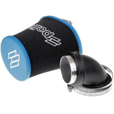 Polini Air filter universal Polini Big Evolution Conish performance filter with 48 mm connection, the air filter has a conical design and is specially designed for Minarelli scooters with an adapter for an angled connection The Polini Big Evolution air filters have excellent filter properties and allow plenty of air to pass through due to their large surface area Type: large evolution conish connection: 48 mm model: conical / hook-shaped dimensions of the filter: diameter at the top ± 10 cm, width at bottom ± 14.5 cm, length ± 13 cm, colour: blue/black
