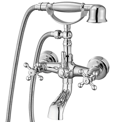 【All Metal Construction】Water Use Information: 1.25gpm 4.73L/min Solid Brass Construction, this wall mount tub faucet is polish chrome finish to prevent discolored and rusty Shower System Mixed Tap Fully meets the latest US federal and state standards. 【Double functions】: Tub Faucet and Handheld Shower, diverter switches between 2 functions. 【Reliable Design】Double cross handle to control hot and cold water, ship with all install hardware. tub wall faucet with sprayer 【Easy To Install】Wall mount with 2 installation hole, come with installation instruction. If need Clawfoot Tub Mount, need extra 3-3/8 Inch Adjustable Swing Arms: B07TQM93LX 【Installation Hole Distance】 5.9 inches (15cm), Ship with adjustable NPT 1/2 adapter to adjust installation hole distance between 5 inch - 6.6 inch (13cm-17cm), Weight: 4.8 Pounds, Manufacturer: Aolemi