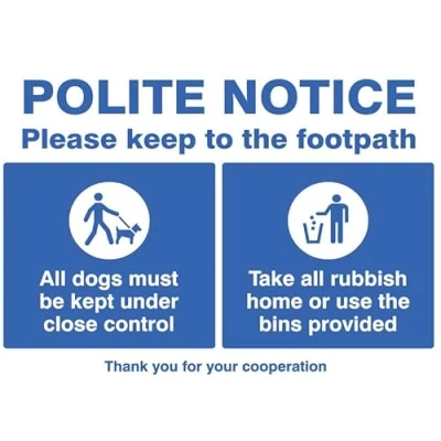 Polite notice Please keep to the footpath (semi rigid pvc safety sign)