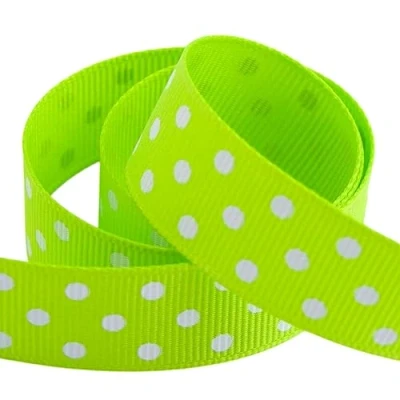 Polka Dot Grosgrain Ribbon 25mm x 10 Metres Lime