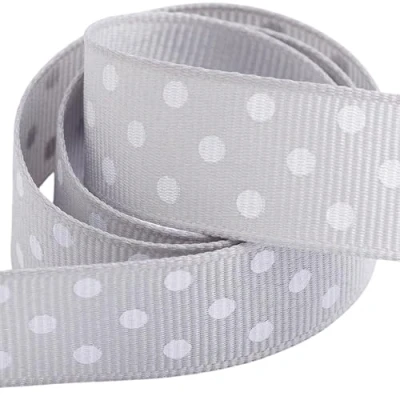 Polka Dot Grosgrain Ribbon 25mm x 10 Metres Silver