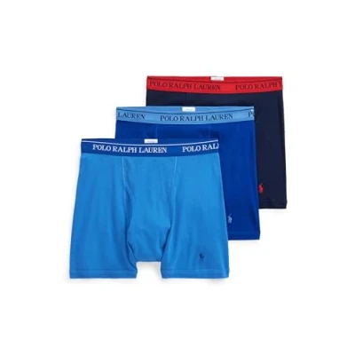 POLO Men's Classic Fit Cotton Boxer Briefs, Regular Leg Rugby Royal/Aerial Blue/Cruise Navy 3 Pack, 2X (Pack of 3)