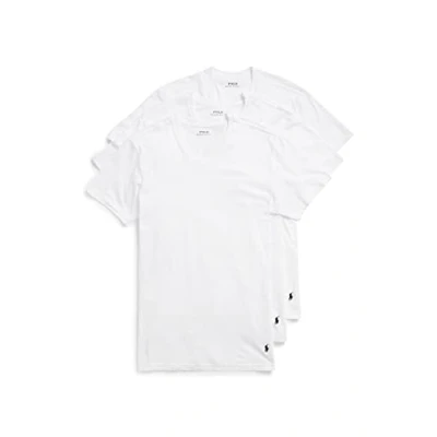 POLO Men's Classic Fit Cotton V neck Undershirt 3 Pack, White/Cruise Navy Pp, XL