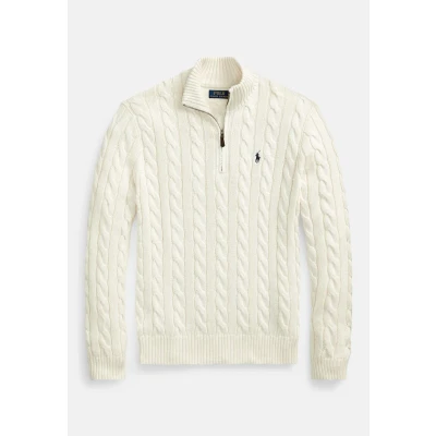 Polo Ralph Lauren Cableknit Cotton Quarterzip Jumper Jumper, Men's, Size: Small, Andover cream