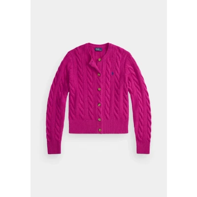 Polo Ralph Lauren Cableknit Woolcashmere Cardigan Cardigan, Women's, Size: Small, Carmine pink