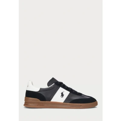 Polo Ralph Lauren Heritage AERA Leather Suede Sneaker Unisex Trainers, Size: 10, Black/white shoes