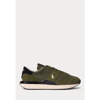 Polo Ralph Lauren Train 89 Suede & Oxford Sneaker Unisex Trainers, Size: 3, Tonal olive Leather and textile