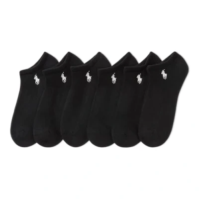 POLO RALPH LAUREN Women's Performance Cotton Low Cut Socks 6 Pair Pack Breathable Mesh & Sport Cushioning, Black, 8 10 UK