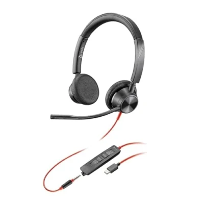 Poly Blackwire 3325 Wired Headset Flexible Microphone Boom Hi fi Stereo Connect to PC/Mac/Mobile via USB C, A, or 3.5 mm Works with Teams, Zoom