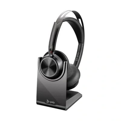 Experience Poly acoustic excellence with the Voyager Focus 2 headset. Loud and distracting background is reduced with three levels of advanced digital hybrid ANC. You'll be ready to have the most critical conversations with confidence.It's you – loud and clear. That's all callers hear. The discreet microphone boom is not only ultra-noise canceling but, with its Acoustic Fence technology, literally creates a virtual noise-free bubble in front of your mouth.Stay engaged during a full day of calls wearing a comfortable headband with cushioned sling and plush ear cushions. The Voyager Focus 2 is designed with you in mind – stay focused and productive all day.Button User Controls:Call answer/end, Mute, Volume +/-, ANC: off, low, high, Power on/off, Bluetooth® pairingIncluded in the box:USB Type-C® charging cable, Quick start guide, Charging stand, Wireless headset, Carrying pouch, BT700 Bluetooth® Type-C® adapter, USB Type-C® to USB Type-A adapter