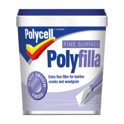 General description Polycell Fine Surface Polyfilla is a ready-mixed filler designed for indoor use on wood and plaster. It effectively fills fine cracks up to 2mm, providing a smooth, professional finish ideal for minor blemishes and wood grain imperfections. The product dries quickly, becoming touch dry within 30-60 minutes depending on conditions, and can be painted over for a flawless finish. Technical specifications Size: 500g tub Color: White Type: Ready-Mixed MPN: 5084947 EAN: 5010567097011 Installation Apply the filler to cracks or imperfections using a putty knife or similar tool. Ensure the surface is clean and dry before application. Allow the filler to dry for 30-60 minutes, depending on conditions. Sand lightly if necessary for a smooth finish. Usage Once dry, sand the surface if needed for a smooth finish. Paint over the dried filler to match surrounding surfaces. Other information