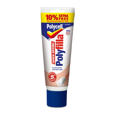 JoybuyPolycell Multi Purpose Quick Drying Polyfilla 330g Tube is a ready-to-use, fast-drying paste ideal for small interior wood repairs such as filling holes, cracks, and gaps up to 10mm deep. It provides strong adhesion, a smooth finish, and can be sanded and painted once dry for easy, efficient touch-ups.