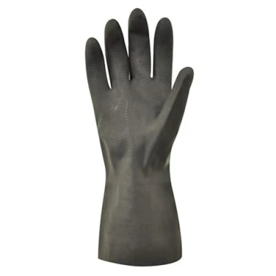 Heavy duty flock lined natural rubber gloves that provide protection against a wide range of chemicals and abrasives Gloves offer good abrasion and tear resistance. Slip resistant pattern on the palm enhances grip even in wet conditions Soft flock lining absorbs perspiration, keeping hands dry, cool and comfortable Chemical resistant to EN374 parts 1, 2 and 3 (ABK) Typical Applications: Construction and Utility, Food Manufacturing and Prep, Janitorial, Waste Management and Local authority