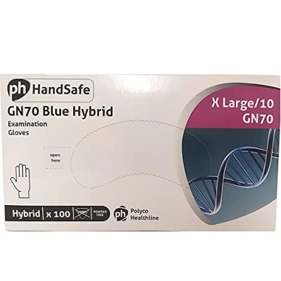 Polyco GN70 Blue Hybrid Latex Free Powder Extra Large 100 Gloves Pack Of 1