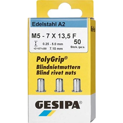 PolyGrip Blind Rivet Nuts Mini Pack Stainless Steel A2 M 5 x 7 13.5 mm 1 Piece (1464888)