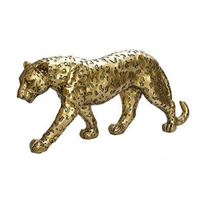 Polyroyal Cheetah Statue Home Decor Leopard Sculpture Resin Sitting Figurine Desktop Table Top Ornament Decoration for Office Gold Or Silver (Walking Champagne Gold)