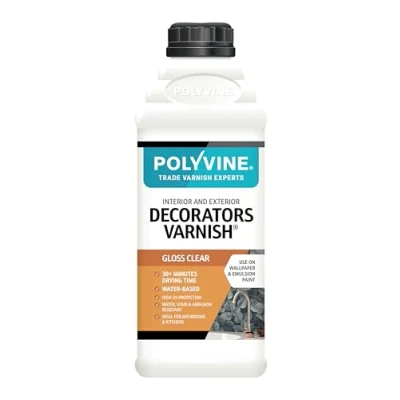 PROFESSIONAL GRADE PROTECTION - Polyvine Decorators Varnish Clear is an advanced nano-technology formula providing long-lasting durability, shielding indoor and outdoor surfaces against UV damage, water, stains, scuffs and everyday wear. QUICK & EASY APPLICATION - Polyvine Decorators Varnish Satin, Gloss or Dead Flat is water-based, drying in just 30+ mins and fully curing in 5-7 days. It offers excellent coverage of 15–20m² per litre, making it ideal for both DIY & professional projects. VERSATILE SURFACE USE - Microporous and breathable, our professional gloss varnish, satin or dead flat varnish is suitable for emulsion & acrylic paint, wallpaper, decorative paintwork, plasterwork, wood, plaster and fabric and comes in 100ml to 4L sizes. CHOICE OF FINISHES – Our range of high-performance varnishes are available in clear gloss varnish for that high gloss shine, clear satin varnish for a deep sheen or our dead flat clear matt varnish for that shine-free surface. TRUSTED UK EXPERTS: Polyvine is a family-run business with 40 years’ experience in painting & decorating. Researched & manufactured on-site, our products are relied upon by professional painters & decorators for a premium, long-lasting finish every time., Weight: 1.085 Kilograms, Manufacturer: Polyvine
