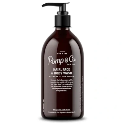 Ultimate 3-in-1 Solution: Pomp & Co. Hair, Face, and Body Wash delivers a complete grooming experience with one versatile formula, designed to cleanse and revitalize hair, skin, and body effortlessly. Iconic Signature Scent: Infused with Pomp & Co.'s renowned signature fragrance, this body wash leaves a refined, long-lasting scent for a fresh and sophisticated feel. Enriched with Argan Oil: Infused with nourishing argan oil, this all-in-one wash provides deep hydration, leaving your skin soft and hair manageable after every use. Economical 1-Litre Size: Perfect for daily use, the generous 1-litre bottle ensures long-lasting value and convenience for home, gym, or professional settings. Premium Grooming for Men: Expertly crafted for men, Pomp & Co. offers a high-quality, easy-to-use solution for a modern and effective grooming routine.