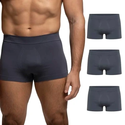 POMPEA 3 Piece Men's Boxer Briefs in Soft Microfibre, Seamless Stretch Briefs, Basic Grey, S M