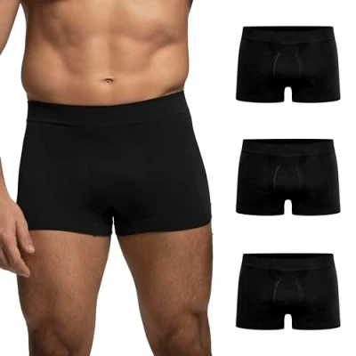 POMPEA Men's Boxer U Seamless Briefs, Black, S M (Pack of 3)