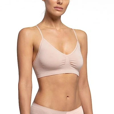 Women's basic skin bra without underwire: elastic band with unique fit, invisible under clothes Seamless bra: flat trim and anatomical and functional zones make the bra practical and comfortable Comfort and quality: the Q-SKIN by Fulgar odor control yarn and the elasticity of the LYCRA fibre provide maximum comfort Seamless Pompea Collection: Designed for everyday life and sports, with eco-friendly materials that ensure comfort and durability As a leader in underwear and hosiery, Pompea looks to the future with a sustainable eye, to become the benchmark of the new trendy comfortwear