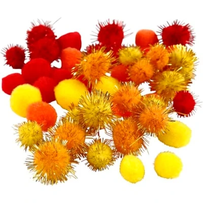 Pompoms, D: 15+20 mm, yellow, orange, red, 48asstd