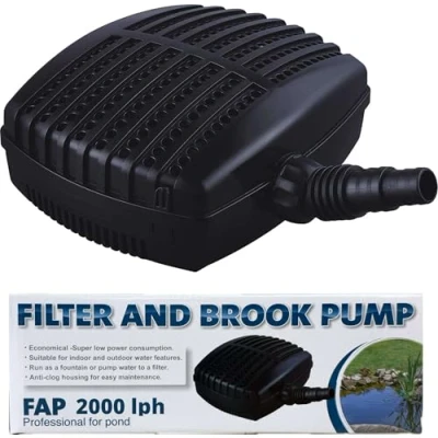 IDEAL FOR SMALL TO MEDIUM SIZED PONDS Provides a consistent flow of water to a Pressure or Gravity filter, waterfall or stream to help your pond offer a healthy environment for your fish or wildlife HIGH PERFORMANCE The compact yet powerful Jebao FAP-2000 pond pump has a Max. Flow Rate of 2000 LPH and can still attain a flow rate of over 1300 LPH located at a 0.5m depth - Max. Head: 2.0m LOW POWER CONSUPTION Using a fixed ceramic shaft rotor together with an oil free magnetic drive to give you reliable peace of mind running and very low power consumption with it's 25w motor. ANTI CLOGGING The outer casing has been designed to stop debris and plant matter clogging up the pumps in-take. This prevents matter reaching your filter saving you time and energy on maintenance ADDITIONAL INFORMATION Fitted with a 10-metre cable. It is recommended to wire the pump directly to a weatherproof switchbox. A stepped hosetail allows you to connect to various size flexi hose, Weight: 4.4533376924 pounds, Manufacturer: Jecod