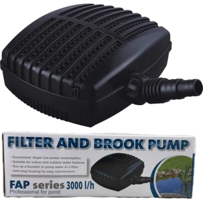 IDEAL FOR SMALL TO MEDIUM SIZED PONDS Provides a consistent flow of water to a Pressure or Gravity filter, waterfall or stream to help your pond offer a healthy environment for your fish or wildlife HIGH PERFORMANCE The compact yet powerful Jebao FAP-3000 pond pump has a Max. Flow Rate of 3000 LPH and can still attain a flow rate of over 2000 LPH located at a 0.5m depth - Max. Head: 2.3m LOW POWER CONSUMPTION Using a fixed ceramic shaft rotor together with an oil free magnetic drive to give you reliable peace of mind running and very low power consumption with it's 40w motor. ANTI CLOGGING The outer casing has been designed to stop debris and plant matter clogging up the pumps in-take. This prevents matter reaching your filter saving you time and energy on maintenance ADDITIONAL INFORMATION Fitted with a 10-metre cable (no plug attached). It is recommended to wire the pump directly to a weatherproof switchbox. A stepped hosetail allows you to connect to various size flexi hose, Weight: 4.739938633 pounds, Manufacturer: Jecod