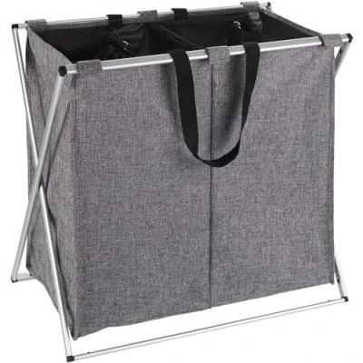 Organize cluttered laundry: WENKO's double laundry hamper allows one to divide dirty clothes in two sections (dark/light) and safely store them before doing washing. The laundry sorter saves one time with every wash Quick to move: The collapsible laundry hamper allows easy movement and transition from room to room. The foldable laundry basket is easy to hide in every corner if not needed. Practical carrying straps facilitate transport of the divided laundry hamper Save space and time: The laundry separator basket from WENKO. This dual laundry hamper is not only a practical household accessory, but also a space-saving addition to bathroom or bedroom, which thanks to its classic grey design complements any room, Weight: 1.6093745126 pounds, Manufacturer: WENKO