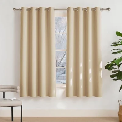 PONY DANCE Bedroom Window Curtains 52 Wide by 63 inch Drop, Biscotti Beige, 1 Pair, Thermal Insulated Ring Top Panels for Home Décor Modern Eyelet Curtain Living Room