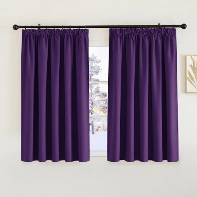 PONY DANCE Blackout Curtains Drapes Short Pencil Pleat Thermal Insulated Window Curtain for Bedroom Decoration Soft Privacy Protected Draperies Living Room, 2 Panels, W66 X L54, Purple