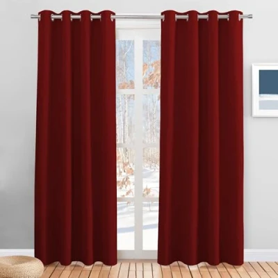 PONY DANCE Blackout Curtains for Christmas Decor 84 inch Length Thermal Curtain Drapes Eyelet Top Space Partition Window Panels Home Decoration, 1 Pair, W 52 by L in, Red