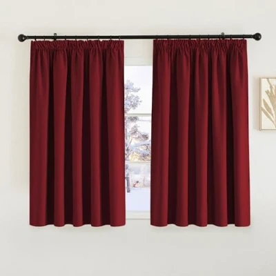 PONY DANCE Blackout Thermal Curtain Panels Home Decor Drapery Pencil Pleat Top Super Soft Insulated Room Darkening Window Blinds for Kitchen, Double Panels, W66 X L54, Red