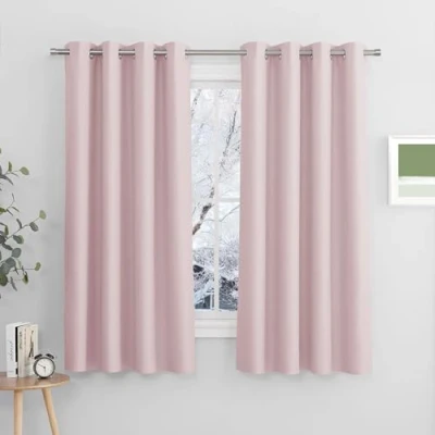 PONY DANCE Eyelet Curtain for Girls W 52 x L 63 in, Light Pink, 2 Pieces, Window Panels Sunlight Bock Privacy Protect Nursery Short Bedroom Drapes Kids Room Decoration
