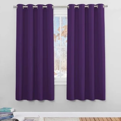 PONY DANCE Thermal Blackout Drapes 72 Drop Window Eyelets Blinds Light Blocking for Living Room Home Decoration Bedroom Curtain Panels, 2 PCs, 46 inch Wide by Drop, Purple