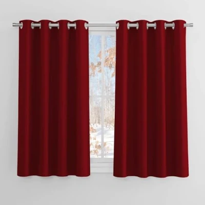 PONY DANCE Thermal Curtains 54 Drop Blackout Curtain for Christmas Home Decoration Kitchen Window Treatment Short Panels Bedroom, 1 Pair, 46 in Wide by inch Drop, Red
