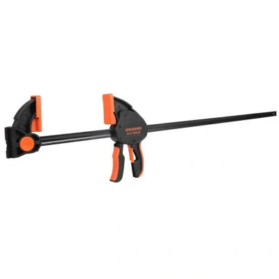 1 x Pony Jorgensen Heavy Duty E-Z HOLD Adjustable Bar Clamp 36in. The Pony Jorgensen Heavy-Duty E-Z HOLD Adjustable Clamps allow for rapid and easy clamping. They can also be easily be converted to spreader clamps. The contoured comfort grip and quick-release lever make it simple to get a firm grasp, and our exclusive patented feature lets you join two clamps together to create a clamp with more than double the opening capacity of a single clamp. Deep-reach pads help protect your work for any marks or scuffs when using. Specifications: Reach: 3 3/8in. Load Limit: 600 lbs.