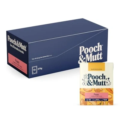 Pooch & Mutt Puppy Specific Pack of Complete Wet Dog Food, Dry Food Topper, 12x375g