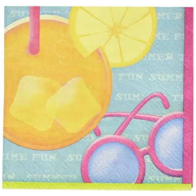 Package of 16 Pool Party Beverage Napkins Pool Party Perfect for serving appetizers or beverages while keeping spills and messes to a minimum These napkins offer convenience and time savings by eliminating the need to wash fabric napkins Bright design of a refreshing summer drink and hot pink sunglasses is fabulous for a pool party, luau, summer BBQ, beach party, or other summer party