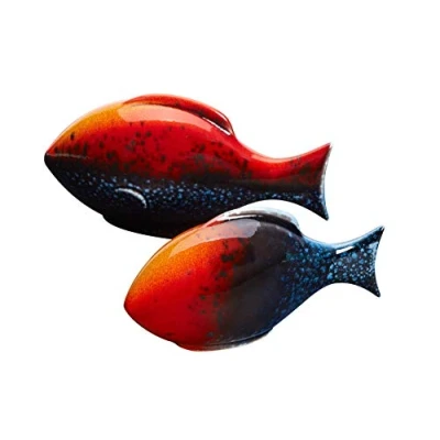 VERSATILE DESIGN & USE: This contrasting and contemporary design is influenced by the contrasting elements of fire and ice. These striking pieces will look great in any home. Each pair consists of a large and a small size, perfect to add character to any room. Put these Poole Fish in your dining room, living room, office or any other room to add colour to your home. UNIQUE GLAZE: The colours and effects of the stunning Celestial Poole Fish have multiple, reactive layers that continue to develop as the piece matures. This design features different tones and shades of blues and reds. HANDCRAFTED IN THE UK: These Poole Pottery pieces have been handcrafted and locally-sourced from the UK, high quality earthenware clay. The process produces durable pieces that will stay with you, providing home decoration for a long time. BEAUTIFULLY PACKAGED: This pair of Poole Fish come in two different sizes. Large Fish: H8.5 x W16 x D5 large fish. Small Fish: H7cm x W14cm x D4cm. This product is presented in a gift box. Hand-wash this product with warm soapy water and dry with a clean cloth. BUY WELL, BUY ONCE: Celestial crafted products are made to last and are sustainably made - Our products provide innovative collections that are colourful ceramics. You'll be sure to find a piece that suits your style of home. Ideal for christmas or birthday gifts.