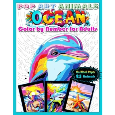 Pop Art Animals: Ocean: Color by number for Adults: Paint Ocean Animals, Quest on Black Paper, Coloring book Relaxation and Stress ... (Color adults books)
