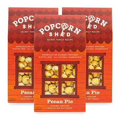 Popcorn Shed 3 x Pecan Pie Gourmet, Nut Caramel 80g, Snack Gift, Orange