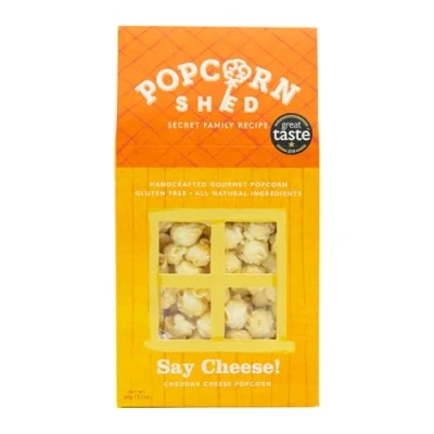 Popcorn Shed Say Cheese! Gourmet Popcorn, 1 x 60g Gift Box, Gluten Free, Natural, Vegetarian, Sugar Free Movie Night Snack, Yellow