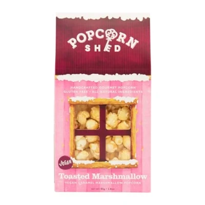 Popcorn Shed Toasted Marshmallow Gourmet, Gift Box, Vegan, Gluten Free, Natural, Movie Night Snack, 80 g, Pink