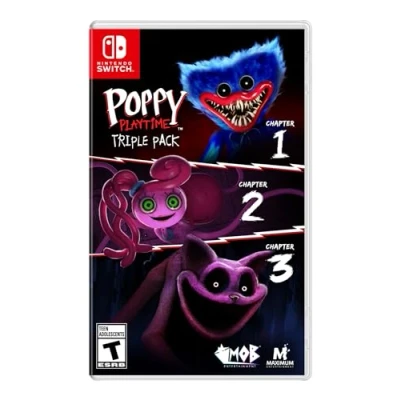 Includes the 1st three chapters; Chapter 1: A Tight Squeeze, Chapter 2: Fly in a Web, & Chapter 3: Deep Sleep Each chapter features engaging new toy characters that can be either friend or foe Survive and progress by solving challenging puzzles Each game reveals to you a newly discovered area of the massive toy factory The Poppy Playtime Triple Pack includes a reversible coversheet and a Poppy Playtime sticker sheet, Platforms: Nintendo Switch, ESRB Rating: Teen