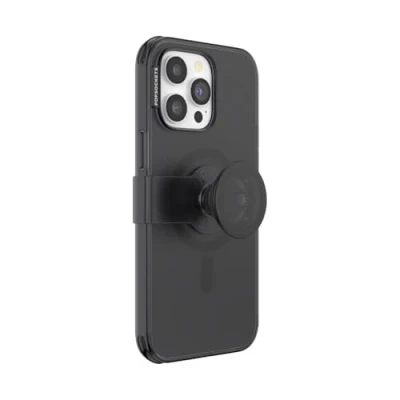 PopSockets iPhone 14 Pro Max Case with Phone Grip and Slide Compatible MagSafe, for Max, Wireless Charging Translucent Black