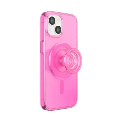 PopSockets iPhone 15 Case with Round Phone Grip Compatible MagSafe, for 15, Wireless Charging Baeby Pink Translucent