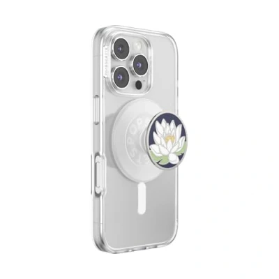 PopSockets Phone Grip for MagSafe, Secure Magnetic & Stand, Hands Free Kickstand, Wireless Charging Compatible Enamel Water Lily Midnight