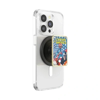 PopSockets Phone Grip for MagSafe, Secure Magnetic & Stand, Hands Free Kickstand, Wireless Charging Compatible, Marvel Enamel Captain America Comic Book