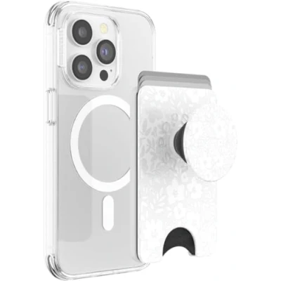 PopSockets Phone Wallet with Expanding Grip and Adapter Ring for MagSafe, Card Holder, Wireless Charging Compatible, Compatible MagSafe Blanc Fresh